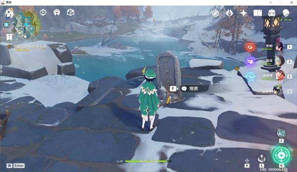 1.首先我们要解锁第三个坚冰碎片,来到星荧洞窟下方,第三个坚冰碎片就在此处,但要先完成边上小冰湖中的挑战并找齐附近的仙灵,才能解开坚冰碎片边上的屏障;
