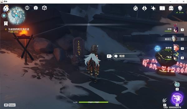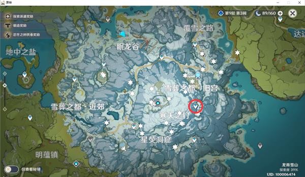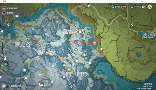 2.之后,我们就可以传送至神像,根据支线任务提示,在同一层位置的前方还有一个山洞,从这个山洞向里走便可来到我们最终的目的地,雪山顶部。之后我们只需完成任务要求,便可解锁雪山副本所在地,以及最后的第八块石碑。