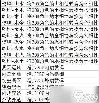 正传武功:(正传武功与普通的一品武功相比,基础都增加了2%的特殊属性加成,除此之外还有一些其他的区别)