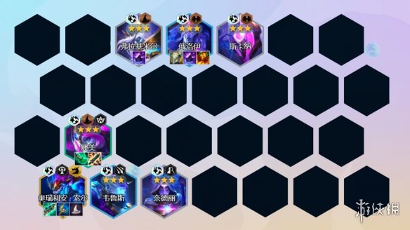 3阶段:3-1阶段直接搜光找到奈德丽、斯卡纳以及弗拉基米尔的3星,娜美有多少拿多少,俄洛伊和韦鲁斯如果卡经济可以选择不拿。这里需要注意3阶段可以没有后排装备,但是前排坦克的装备一定要有。像兹诺特的传送门、石像鬼石板甲、日炎斗篷这些前排装必须做出一件。