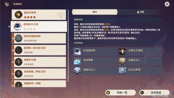 讨伐列表:全都是冰属性的,还有「冰深渊法师」和「冰盾丘丘暴徒」,香菱、班尼特肯定首选