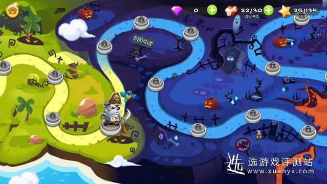 这款游戏的玩法类似于弹弹堂和愤怒的小鸟。在游戏中,玩家控制一个小骷髅。他手中的武器可以击落绑在小狗身上的气球,以防止小狗攻击你。此外,在boss战任务、救援任务、简单击杀任务等任务方面也加入了很多内容,给玩家带来欢乐。
