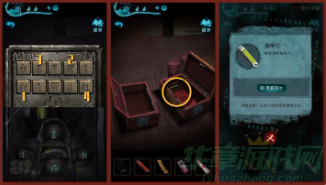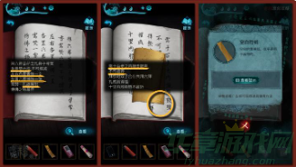 再点击右侧的木盒,根据上述的密码线索,盒子打开,拾取【指甲刀】,翻阅里面的【红皮书】