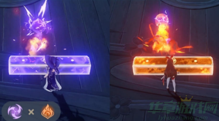 4、推荐角色:一个火元素角色和一个雷元素角色,打超载,破坏效果[爆轰]。(不能带水元素角色)