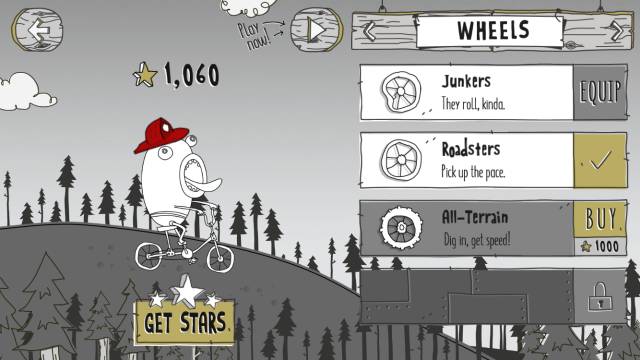 游戏主角是游戏icon的主角,他骑着破旧的自行车,噘嘴,伸出长长的舌头,表情活泼。