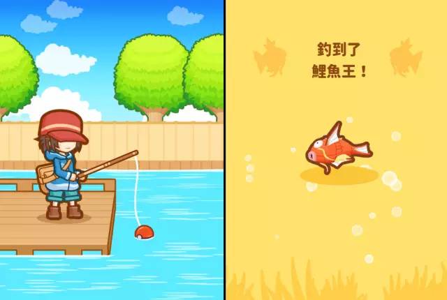 通过参与游戏,玩家可以从钓友手中选择一根钓竿,随机钓到各种属性和花纹的鲤鱼王。鲤鱼王的等级上限受限于饲养员的等级,图案的稀有度也有完全不同的鲤鱼王加成属性。