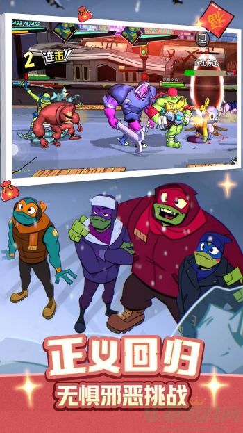 忍者龟归来手游是一款改编于动漫忍者神龟而来的动作冒险格斗手游。游戏中还包括丰富的关卡和挑战,玩家可以探索不同的地图和战斗环境,解锁新的故事章节并解决各种任务和谜题。此外,游戏还提供多人合作模式,玩家可以与其他玩家组队合作,共同挑战更强大的敌人和获得更多的奖励。游戏的玩法主要包括战斗和收集。玩家需要组建自己的忍者团队,通过战斗来对抗敌人,包括《忍者神龟》系列中的经典反派角色。每个角色都有独特的技能和能力,玩家可以通过提升角色的等级、装备强化和技能升级来增强他们的实力。此外,玩家还可以收集和解锁更多的忍者龟和其他经典角色,丰富游戏的阵容和策略性。那么接下来我就给玩家们介绍一下忍者龟归来最强角色推荐。