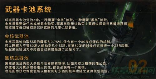 幻塔武器卡池分为2钟,一种需要”金核”抽取,一种需要”黑核抽取,