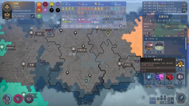 该游戏还具有如何保持城市发展的创新方法。玩家可以选择“吸收”邻近城市的哨站,使其成为城市的辅助部分,并获取该地区的所有资源和人口。玩家还可以“摧毁”哨站,重新调整所有权,平衡城市之间的资源,随时专注于关键的事情。如果玩家在中期研究相应的技术,AI可以进一步整合城市,去除地图上的“非法建筑”。