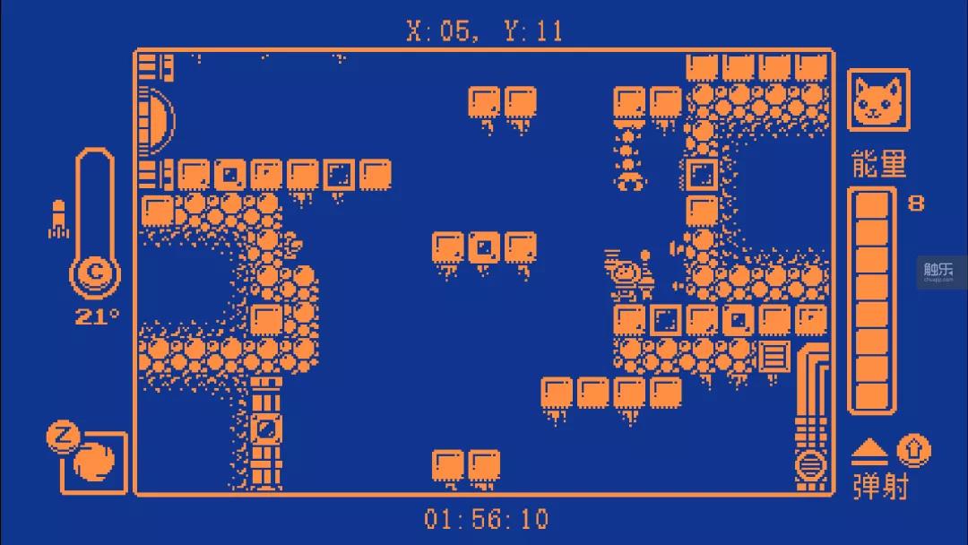 《Gato Roboto》有一个好看的主题——猫和机器人(游戏名直译),它还支持游戏主角的两种状态——琪琪可以在游戏中单独行动,你可以另外,我会穿一个机甲(太空服)并有力地前进。主角七七是主角,机甲“反差萌”,杀手坐拥萌宠,真是让人无法抗拒,Doinksoft很清楚“卖萌”的主题是什么,游戏中没有人声的配音,而是使用“可笑又可爱”的电子合成语音。 Kiki 的声音是真正的猫叫声。不幸的是,很难“可爱”,因为每次你发出声音,你总能用微笑的猫嘴“甩掉包袱”(笑)。