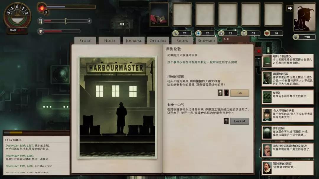 听了玩家的启蒙礼包后,我开始体验这款游戏。也许这个别名比严肃的名字“雅思之海”更广为人知。《无光之海》制作团队制作了互动网页游戏《失落的伦敦》(Fallen London),《无光之海》延续了前作的世界观,伦敦坠地向地下蔓延。玩家扮演船长,从伦敦前往大海,探索浩瀚而神秘的海洋,在各个港口停泊,交换货物和情报。