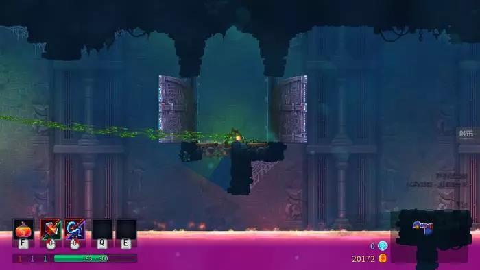 拿到钥匙后,很多玩家都一头雾水,因为“洞穴”和钥匙不在同一张地图上,但游戏并没有直接的提示。此时,玩家返回法线地图,穿过“囚室”、“毒液下水道”、“旧下水道”、“恶心地窖”、“墓地”五张老地图,进入“洞穴”。你需要找出答案。 “在墓地深处。使用你的钥匙来体验新的游戏内容。事实上,《墓地》本身并不是死亡细胞中的热门地图。按照玩家正常的游戏习惯,这是一条通往“墓地”的曲折道路,因为它需要爬墙、践踏地面等特殊动作。通常被忽略。此处设置新的地图入口,间接提高本体中冷门场景的利用率,制作组可以善意解释。