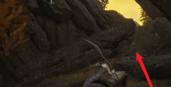 2、然后前往黄金树的山丘,跳到左边的山坡上。