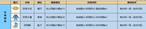 下雨每30分钟刷新1次,玩家需穿戴防雨套装。