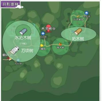 水拓木在月影密林的左上角刷新,具体位置看下图:
