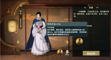 龙游是毒debuff的输出定位,建议选择带有控制效果的本命侠客,方便龙游的群体输出。最佳选择是【赤练】,能够造成范围减速效果,还附带灼烧。其次是【卫庄】,有着高额的范围伤害,还有一秒的眩晕效果。