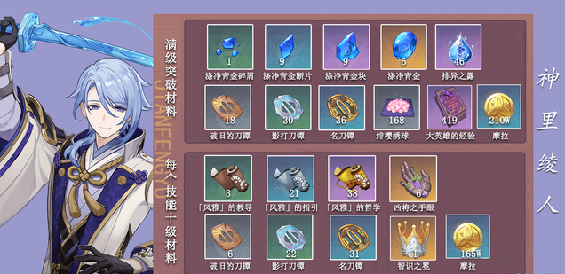 原神神里绫人天赋等级突破材料一览