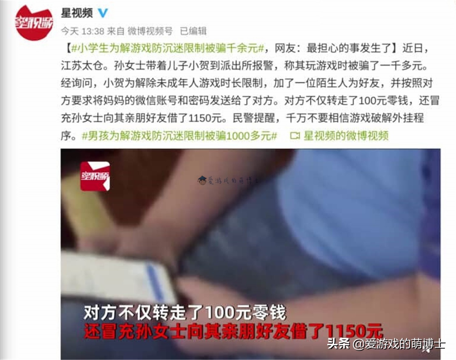 据江苏太仓一位名叫孙女士的最新报道,将一名上小学的儿子带到派出所,声称孩子们又被骗了1000多元。移除游戏的防沉迷限制。中国新年。当她的孩子登录游戏时,他看到游戏大厅里有人尖叫着说他可以帮助未成年人解除游戏限制。为了能玩一会儿游戏,孩子加了一个陌生人作为朋友。一位陌生人说,要解除成瘾限制,需要先获取微信账号和密码才能登录游戏。之后,孩子将孙的账号和密码给了对方。之后,一个陌生人不仅在微信上转发了100元的找零,还冒充孙某向朋友借钱盗取了1150元。当然,没有所谓的骗子破解插件!