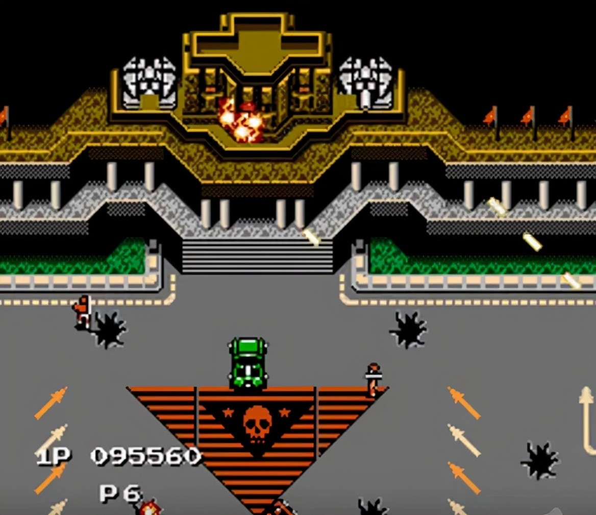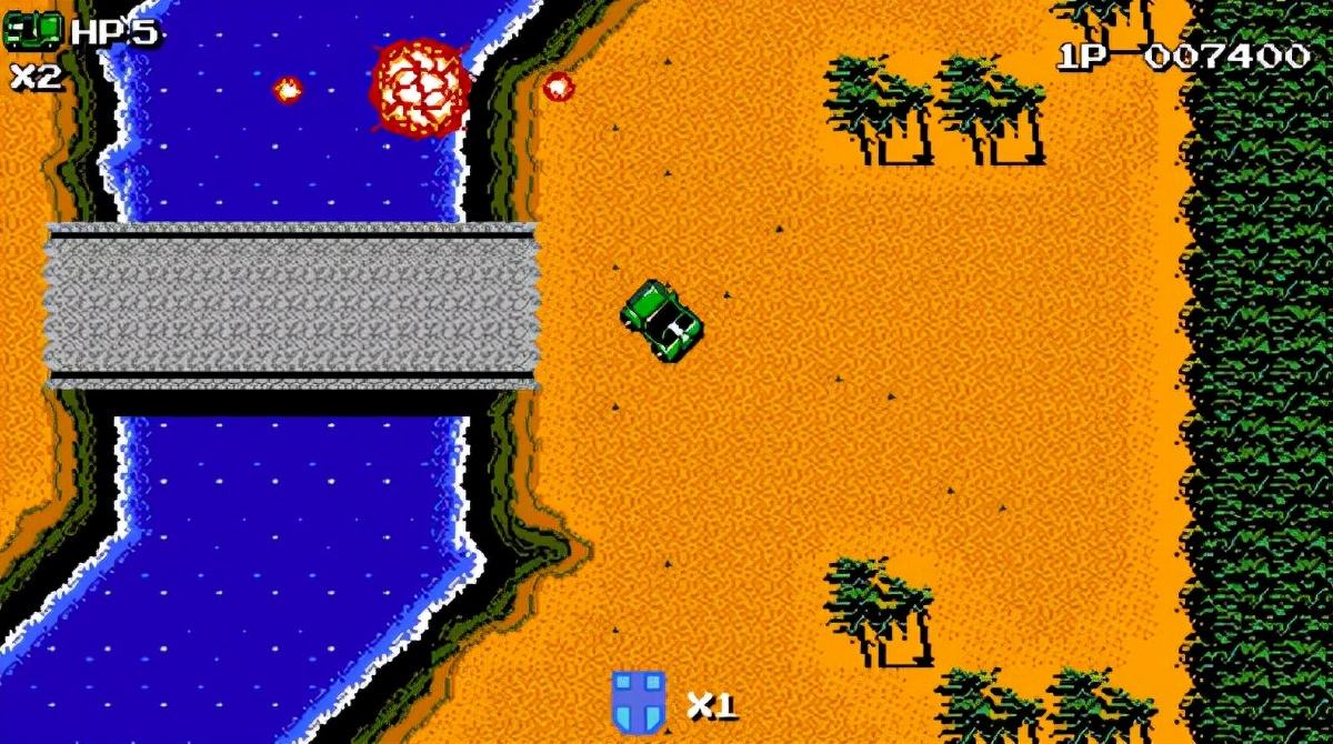 但在那个年代,FC手柄只有一个八向操作的十字键,外加两个功能键。显然,不可能同时向各个方向移动和射击。对于像《红色堡垒》这样的自上而下的游戏,十字键控制车辆移动,射击方向与车辆前方方向一致,是最优的操作方案。